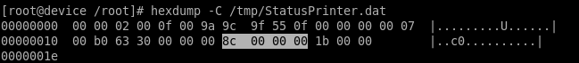 hexdump -C /tmp/StatusPrinter.dat