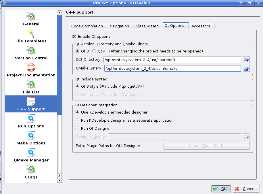 C++ Support - Qt Options