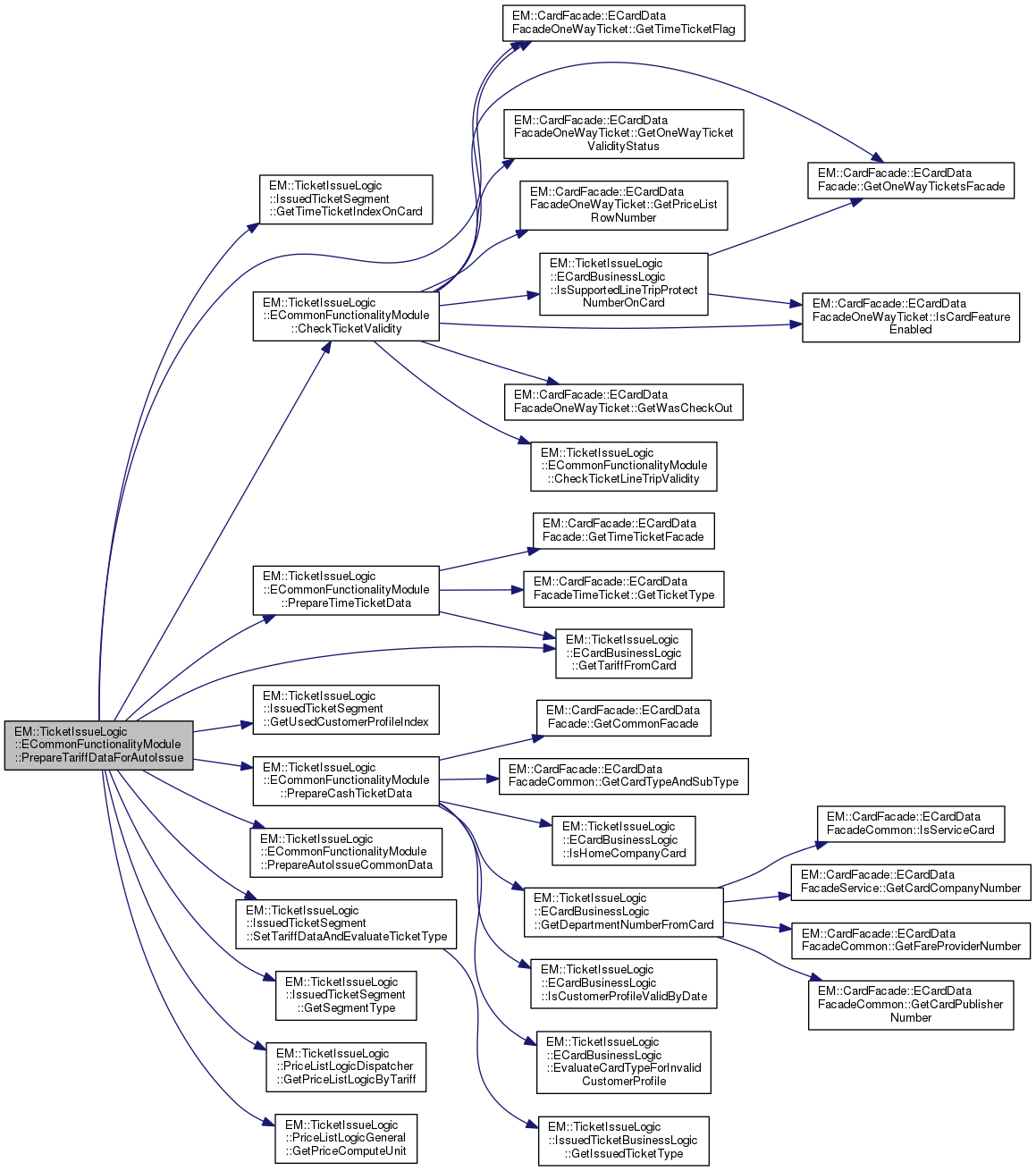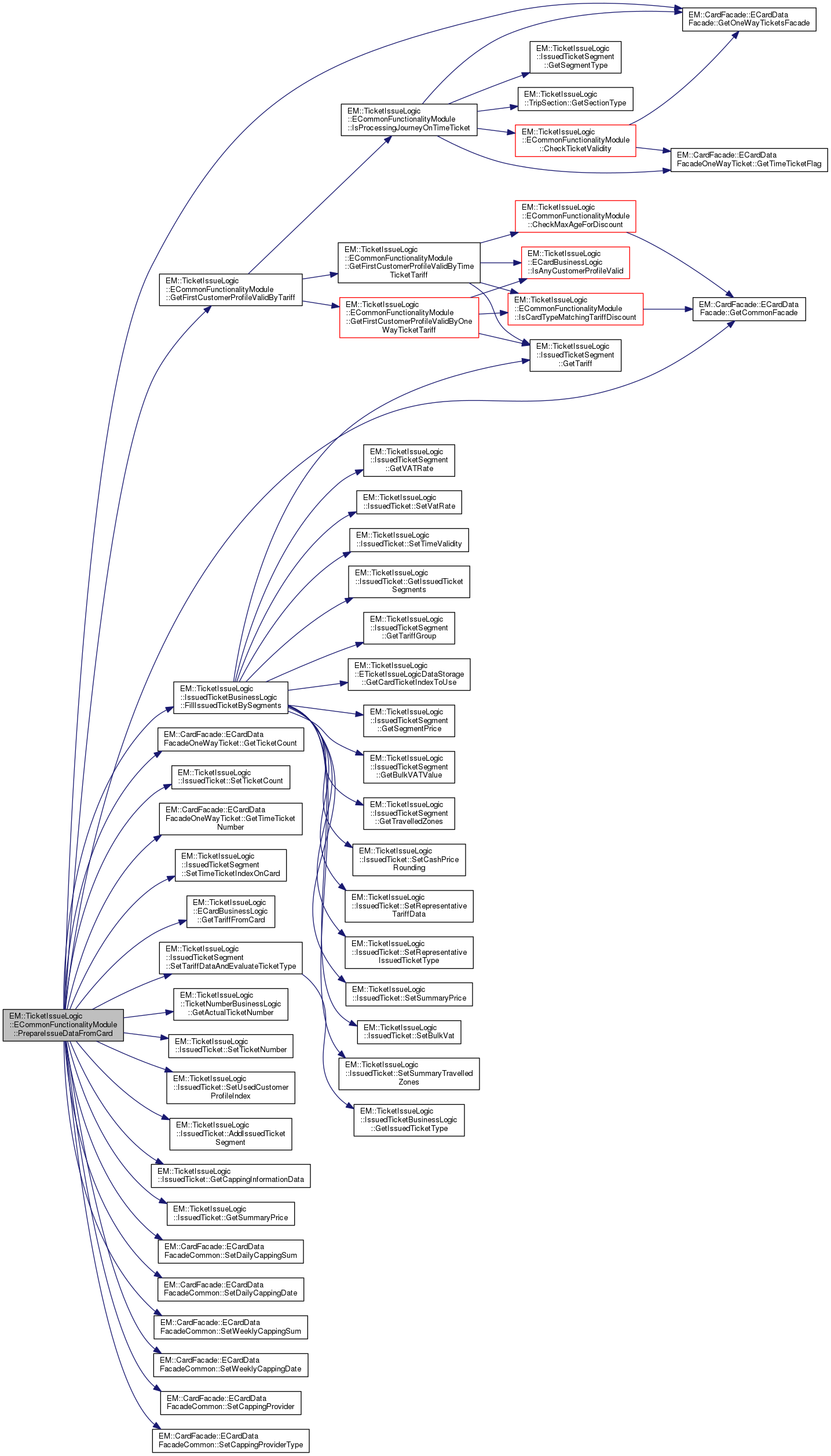 | PrepareIssueDataFromCard - Function create IssuedTicket, Prepare Tariff from one way ticket facade. More... | |
