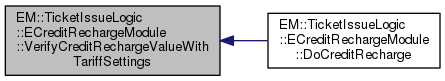 | EIssueLogicDefines::ReturnValues ECreditRechargeModule::VerifyCreditRechargeValueWithTariffSettings | ( | Strojcek::VstupneUdaje::TarifnySystem::ETarifa * | creditRechargeTariff, |
