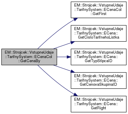 | ECena * | GetCenaBy (unsigned short cisloTarifnehoListka, short typStlpcaID, char cenovaSkupinaID) |