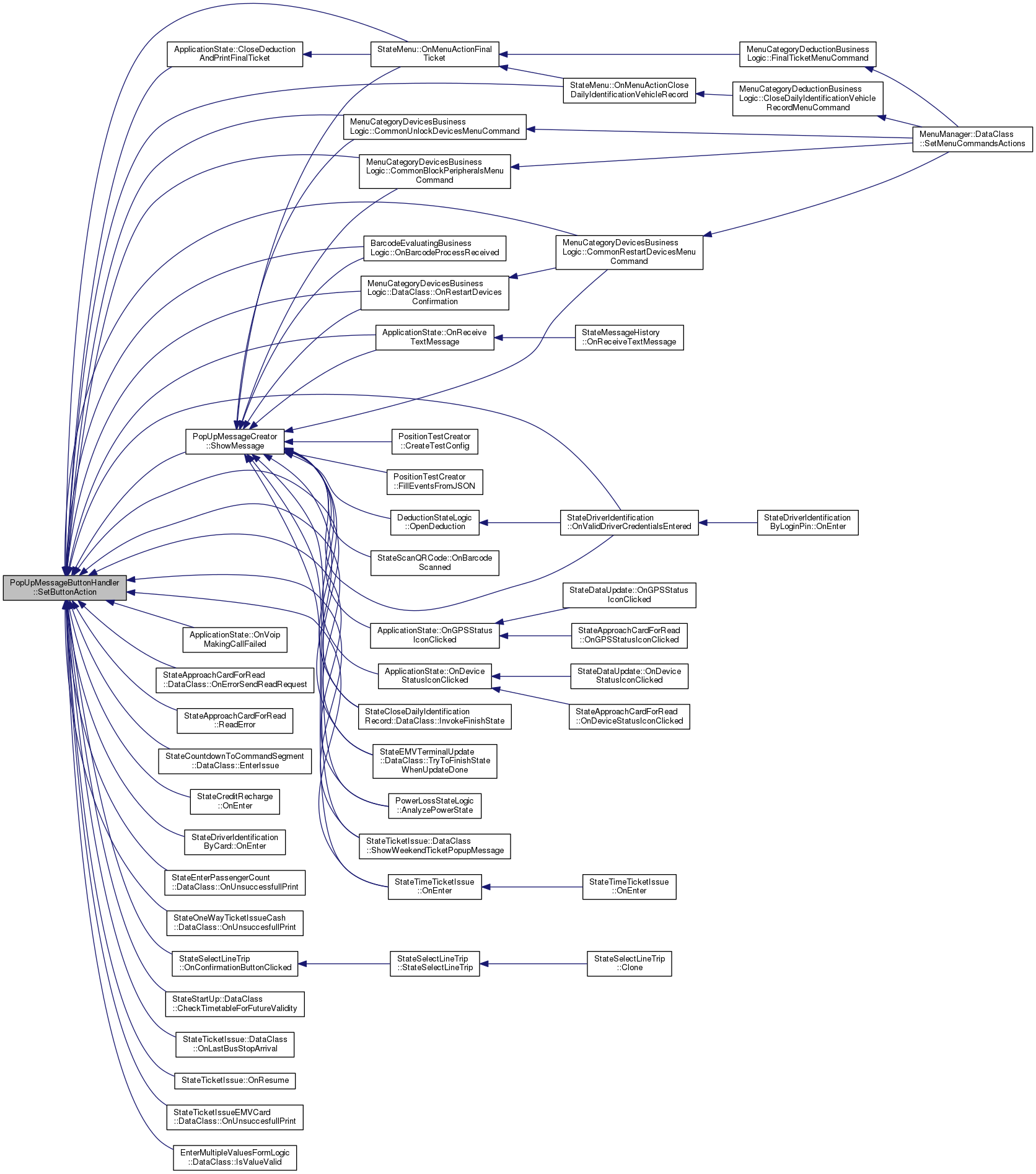 SetButtonAction sets action for a button identified by 'button' parameter. The action is an object of type ButtonAction, which is defined in class ApplicationDefines as follows: